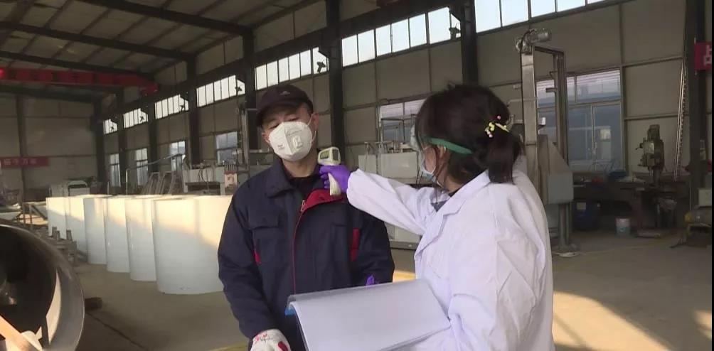 在煙臺茂源食品機械有限公司的大門口,公司安排了專門人員為進入廠區(qū)的工人進行體溫檢測,這是企業(yè)為切實防止人員流動和集聚帶來的交叉感染,有序做好企業(yè)復(fù)工后疫情防控工作的一項具體舉措。