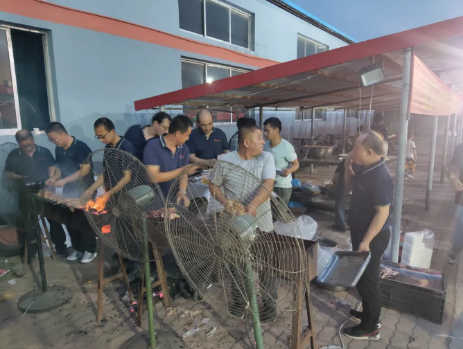 各部門員工自己動(dòng)起手來烤燒烤,忙的不亦樂乎。